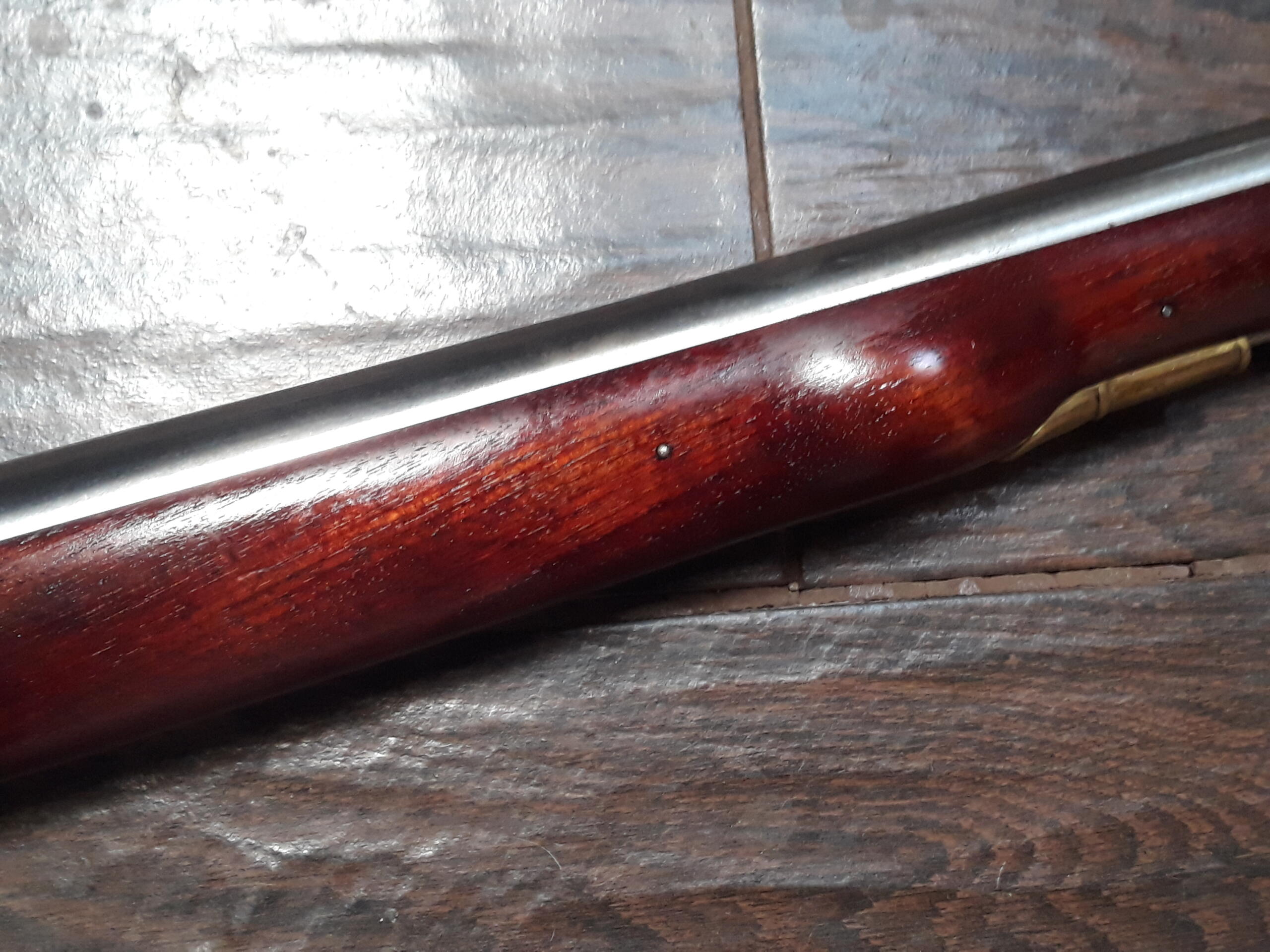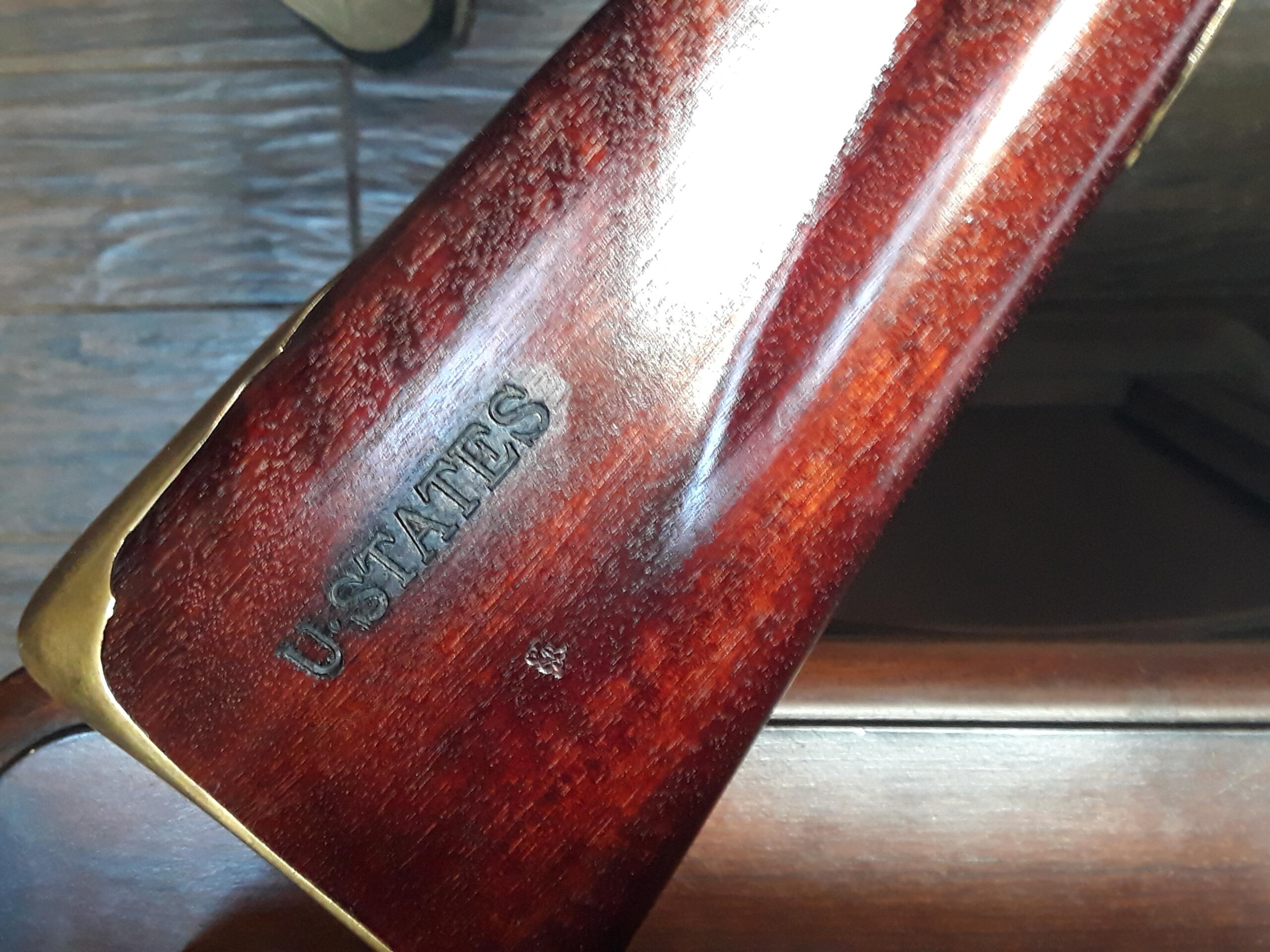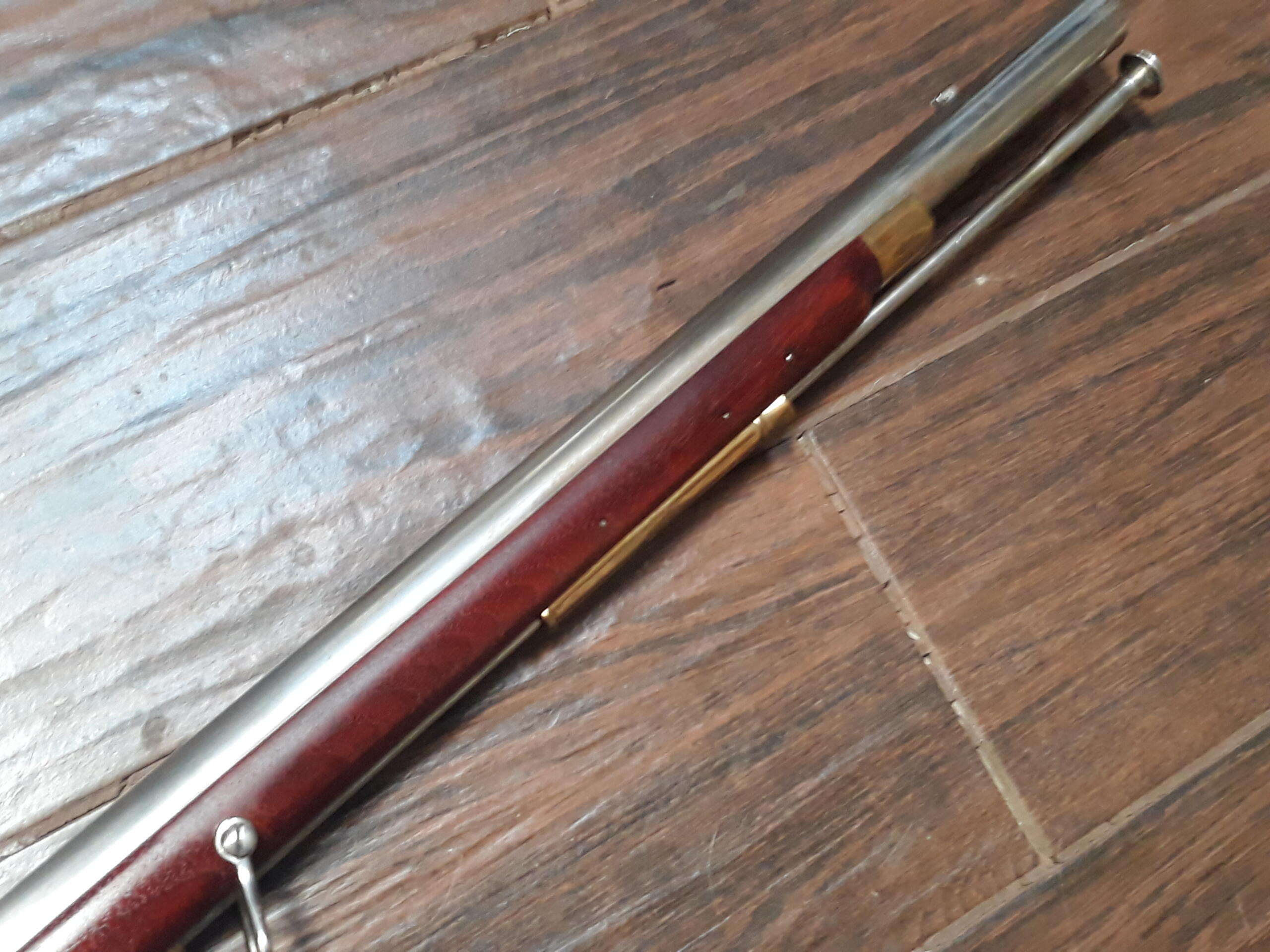 Here we have a very nice Short Land Pattern Brown Bess. I believe it was made by Chesapeake Manufacturing. Very well done using The Rifle Shoppe parts. Looks unfired. Comes ready for reenactment. The U.STATES brand is the correct size and font! 42″ clean barrel. A really outstanding musket!