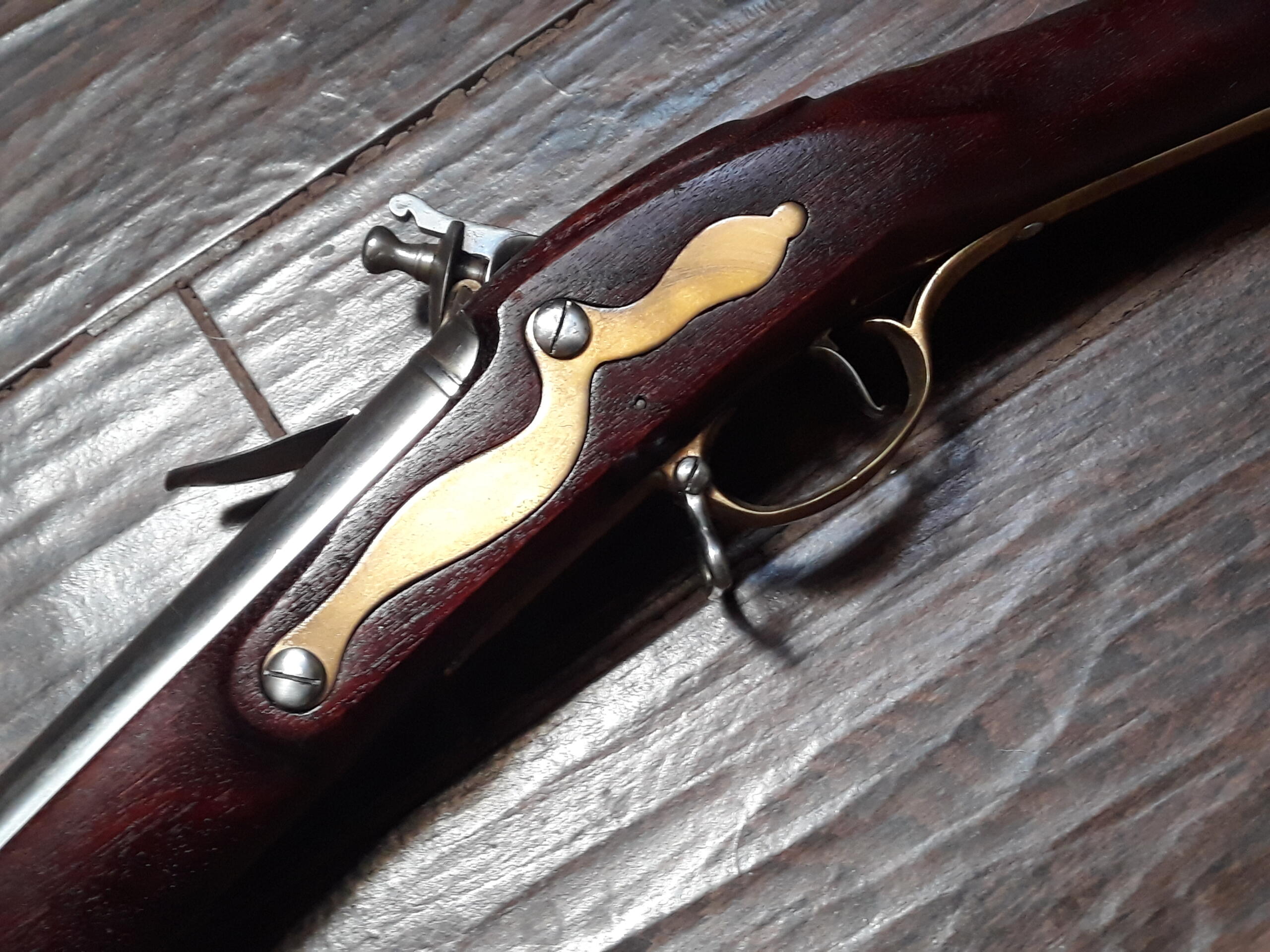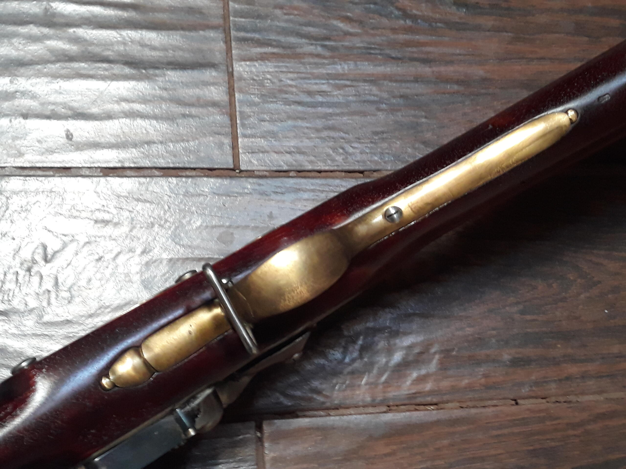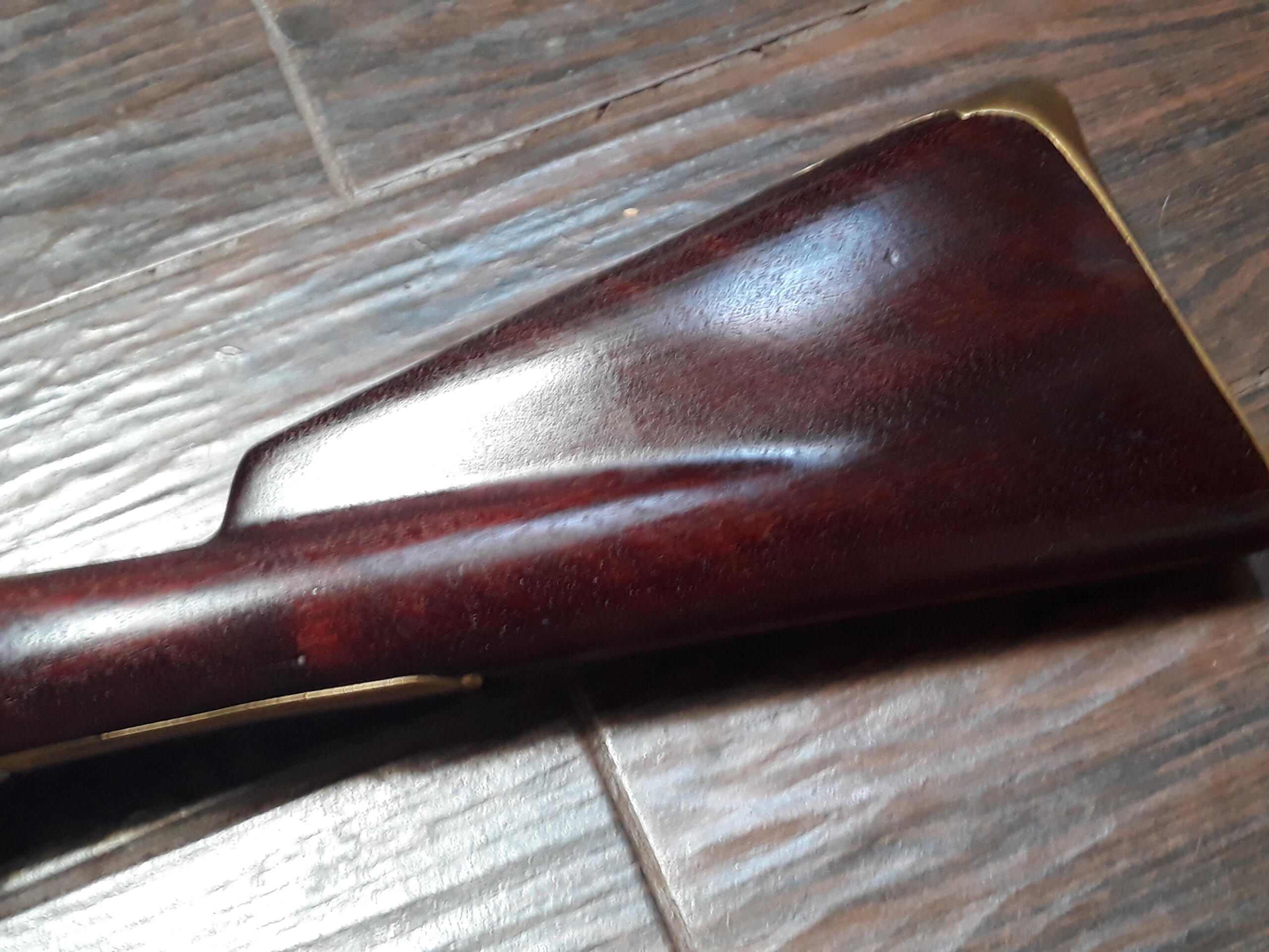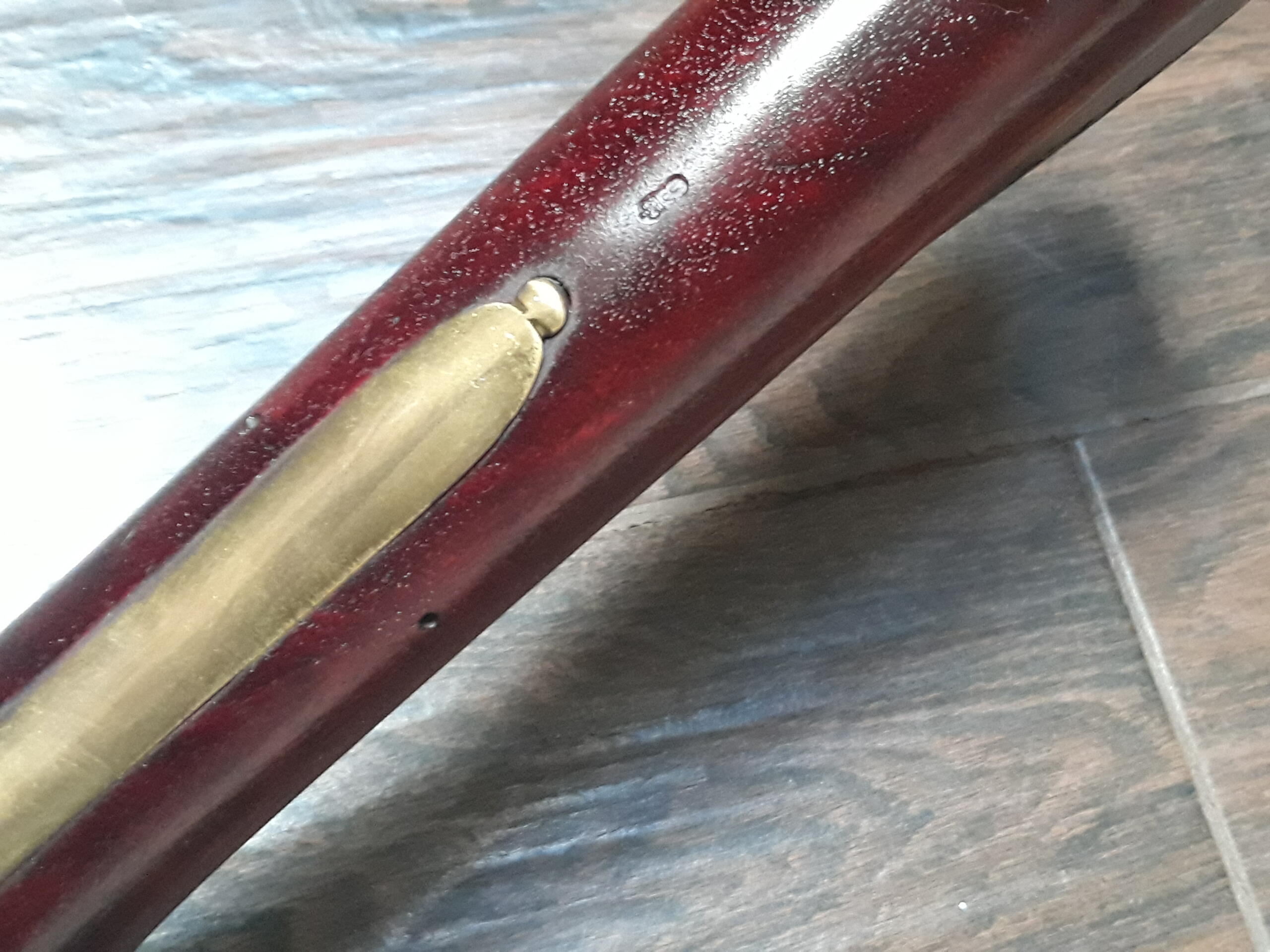 Here we have a very nice Short Land Pattern Brown Bess. I believe it was made by Chesapeake Manufacturing. Very well done using The Rifle Shoppe parts. Looks unfired. Comes ready for reenactment. The U.STATES brand is the correct size and font! 42″ clean barrel. A really outstanding musket!