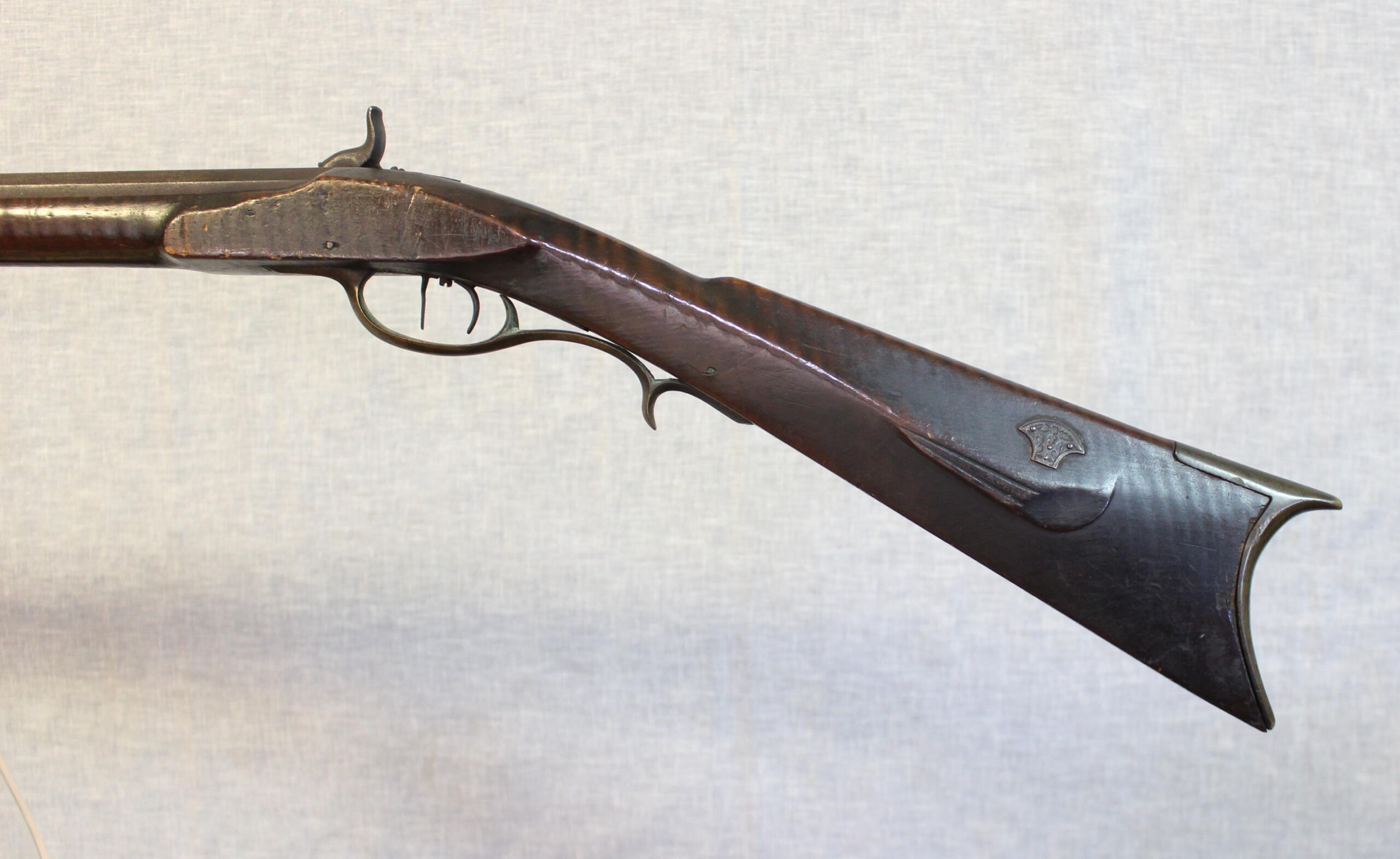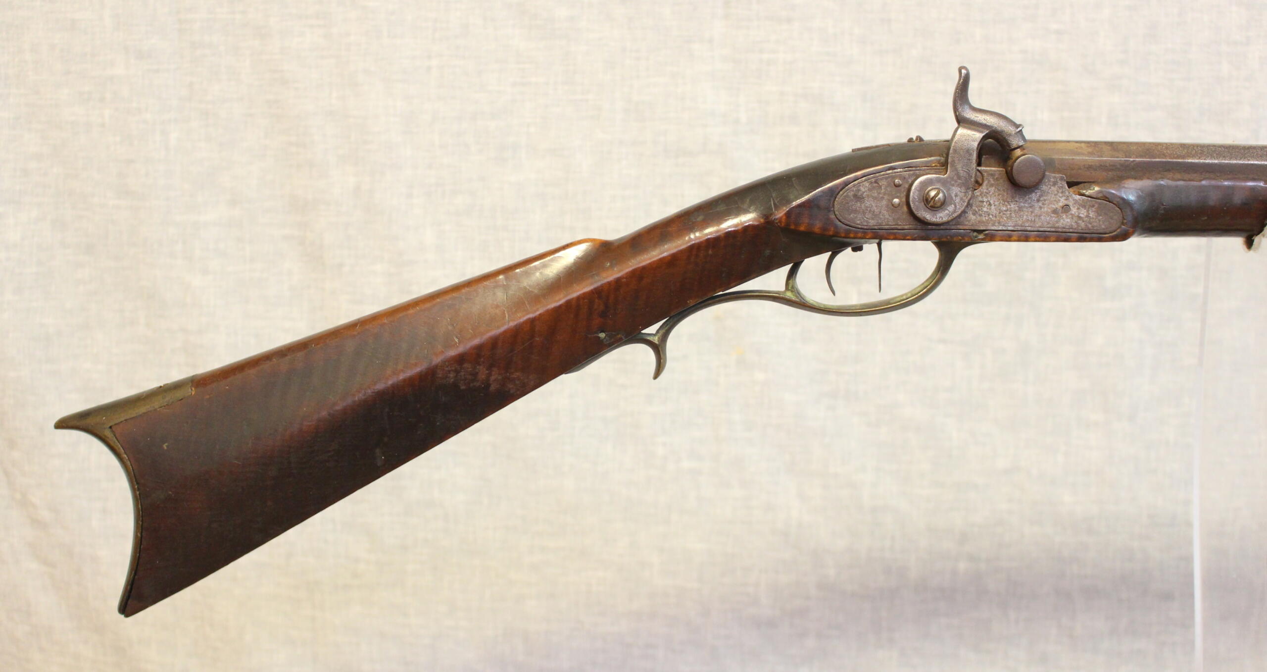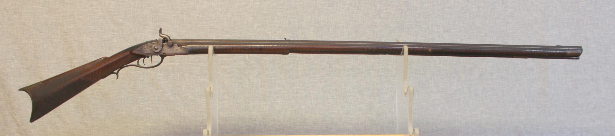 Christian Beck III, who trained in John Bonewitz’ shop, worked in many places throughout his life. He moved from Martinsburg, (now) WV to Connersville, Indiana in 1831. His son Christian was a gunsmith there as well and Christian III may have worked with him. The rifles bares similarity in architecture to ones he made in Williamsport and Martinsburg in the late 1820’s. There can be little doubt that Christian signed this rifle as the script is exactly the same as the script on his rifles of the late 1820’s.