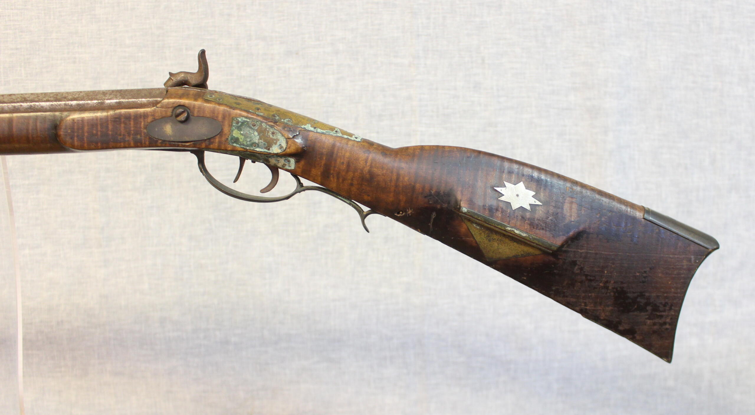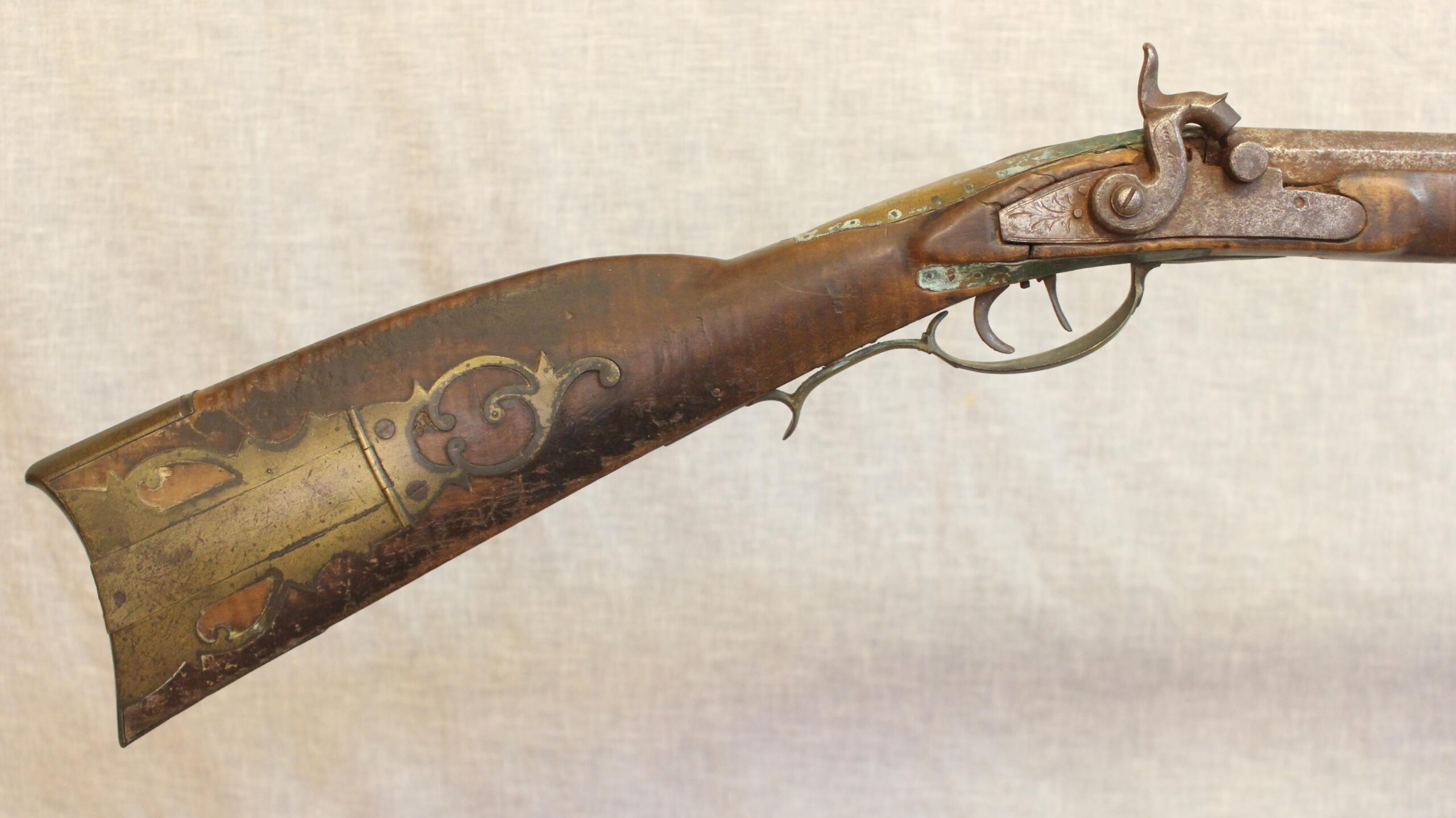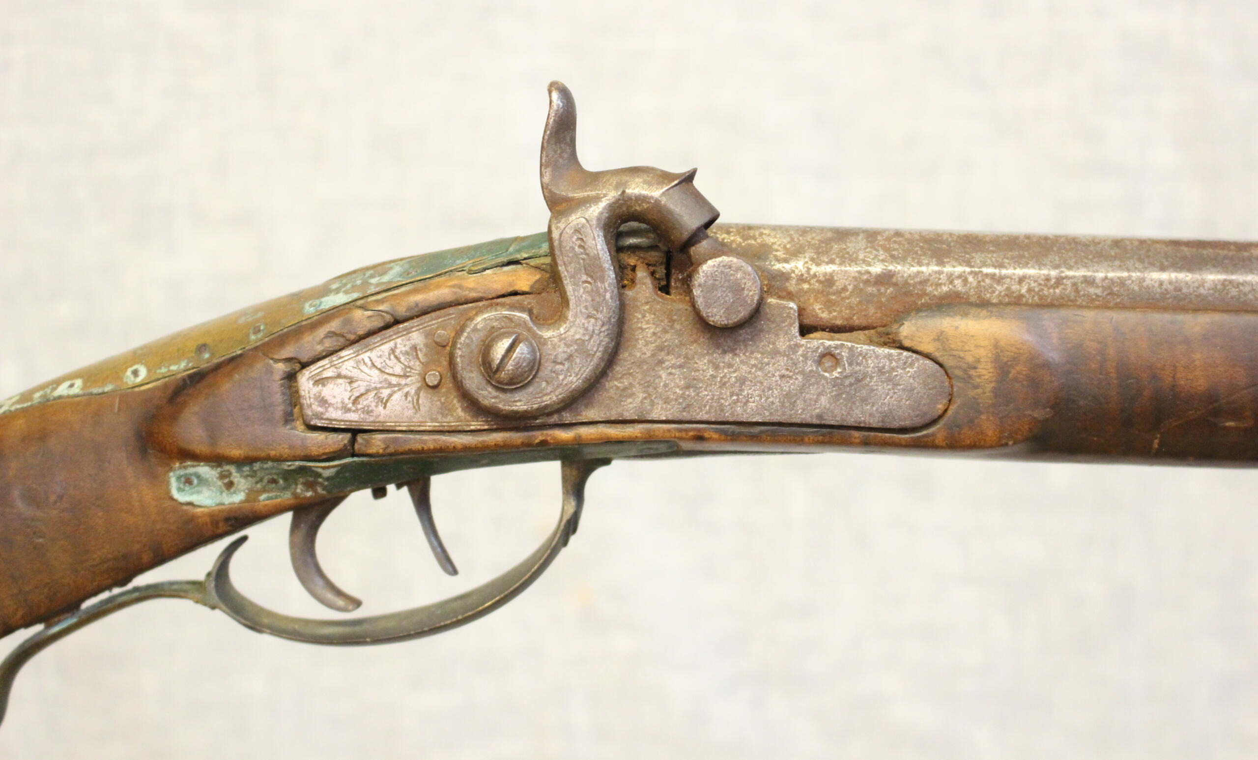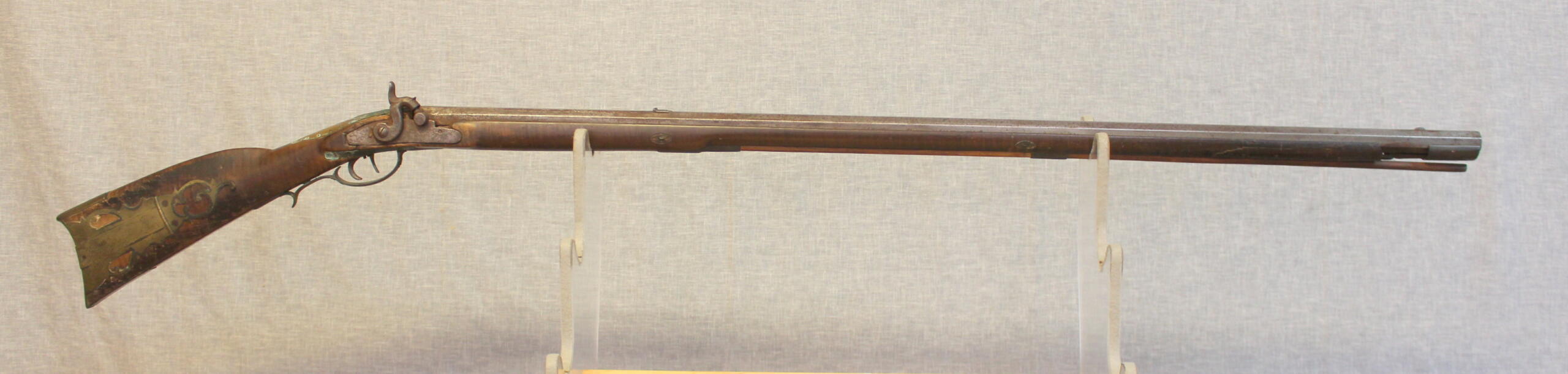 The rifle has an original old untouched surface that could and should be preserved. This will be a nice signed upper Susquehanna rifle when finished. A good project for a restorer with some experience.