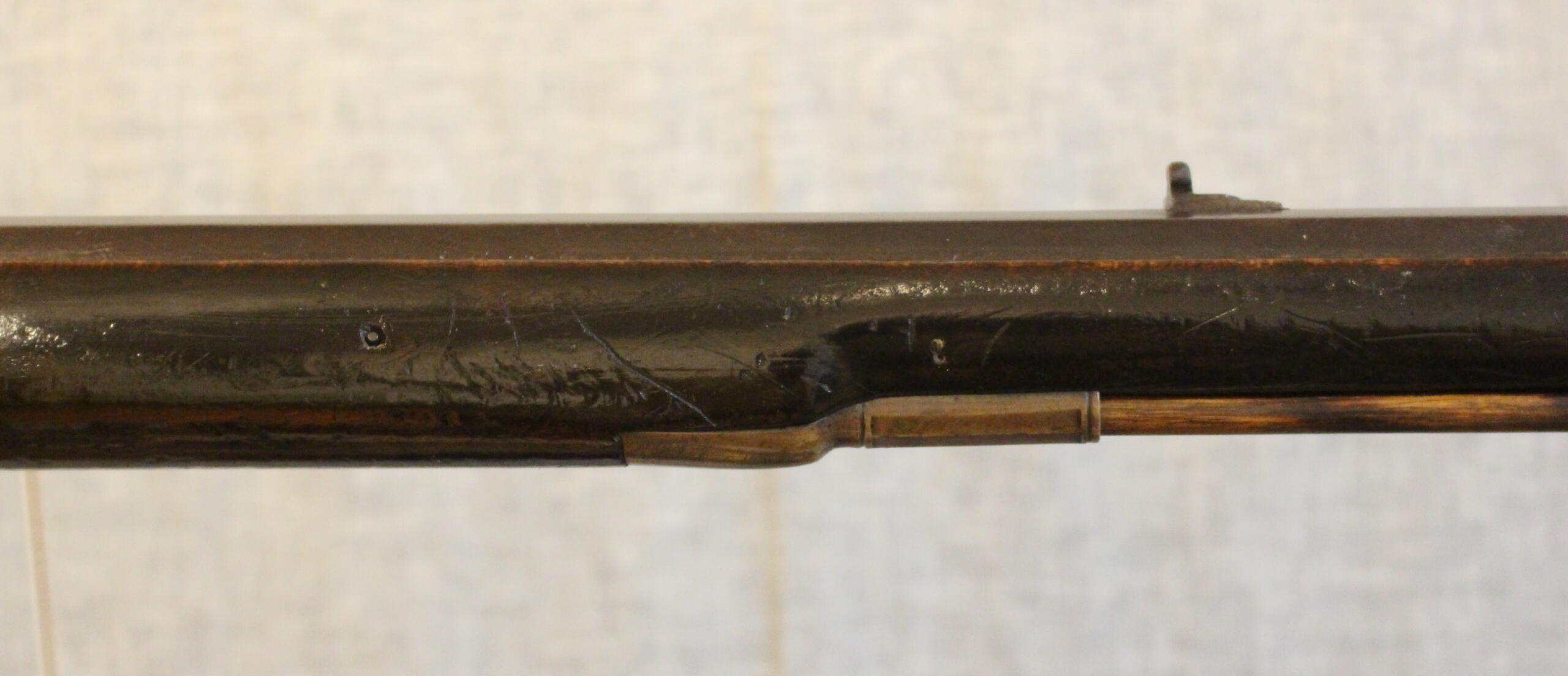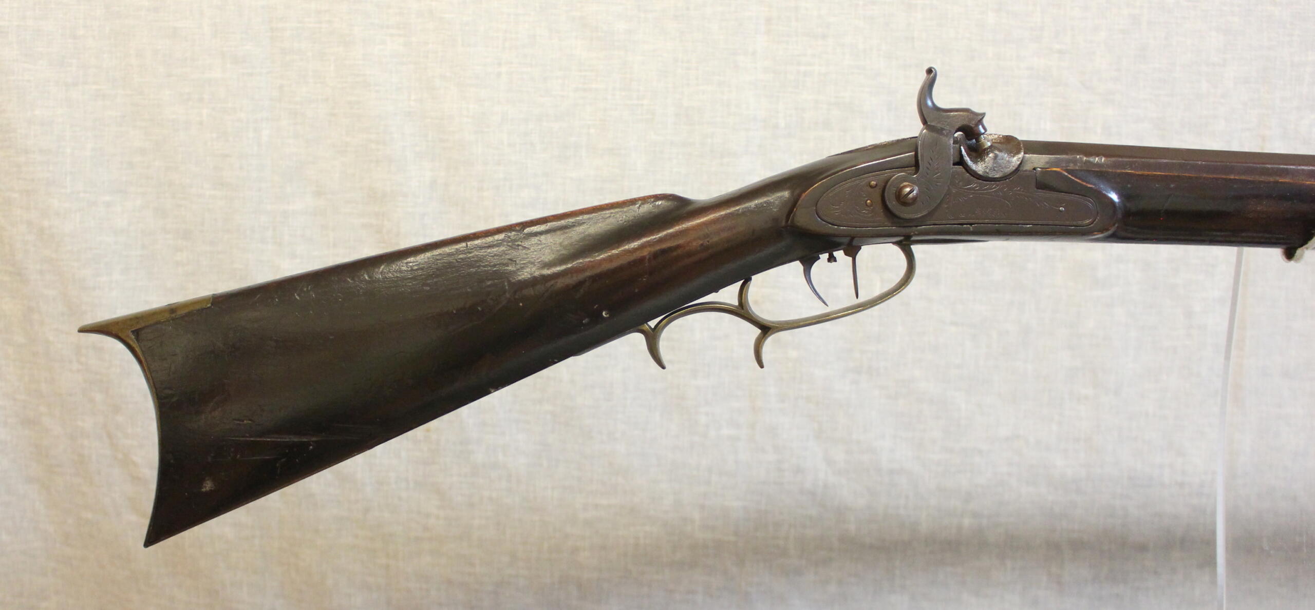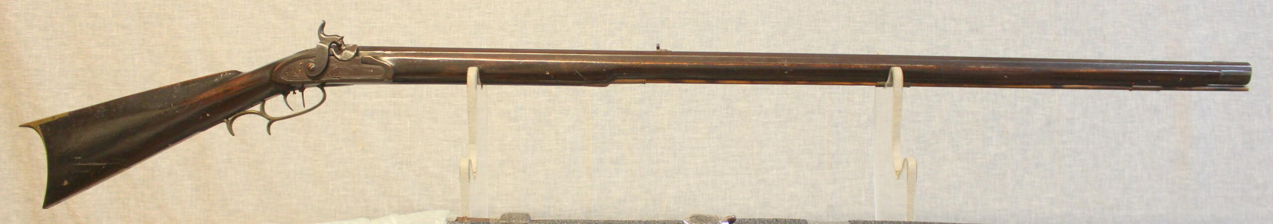 Plain but rare and almost perfect condition. Matthias Schroyer rifles are almost non-existent. Mathias was George’s younger brother that died in 1826. This example could be a restock or made by Matthias’s son Matthias Jr. Matthias moved to Butler PA and died there.