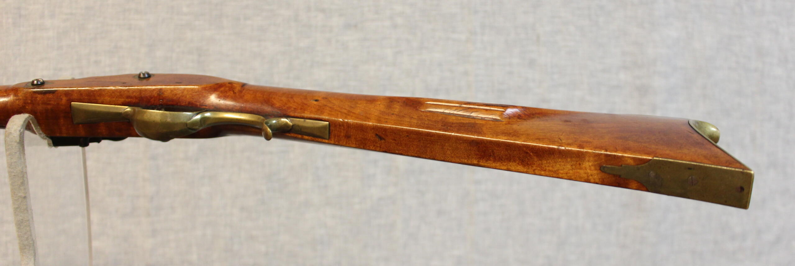 The Hess family of gunsmiths worked in Heidelberg and Lynn townships from the 1780’s til the mid 19th century. This example is diminutive in scale and probably made for a boy. It is a rare survival in like-new condition. The lock is in it’s original unaltered condition and original to the rifle. The 35″ barrel is about .40 cal. This is a remarkable and rare example from the Hess family of gunsmiths. Copies of articles written about the family come with the rifle.