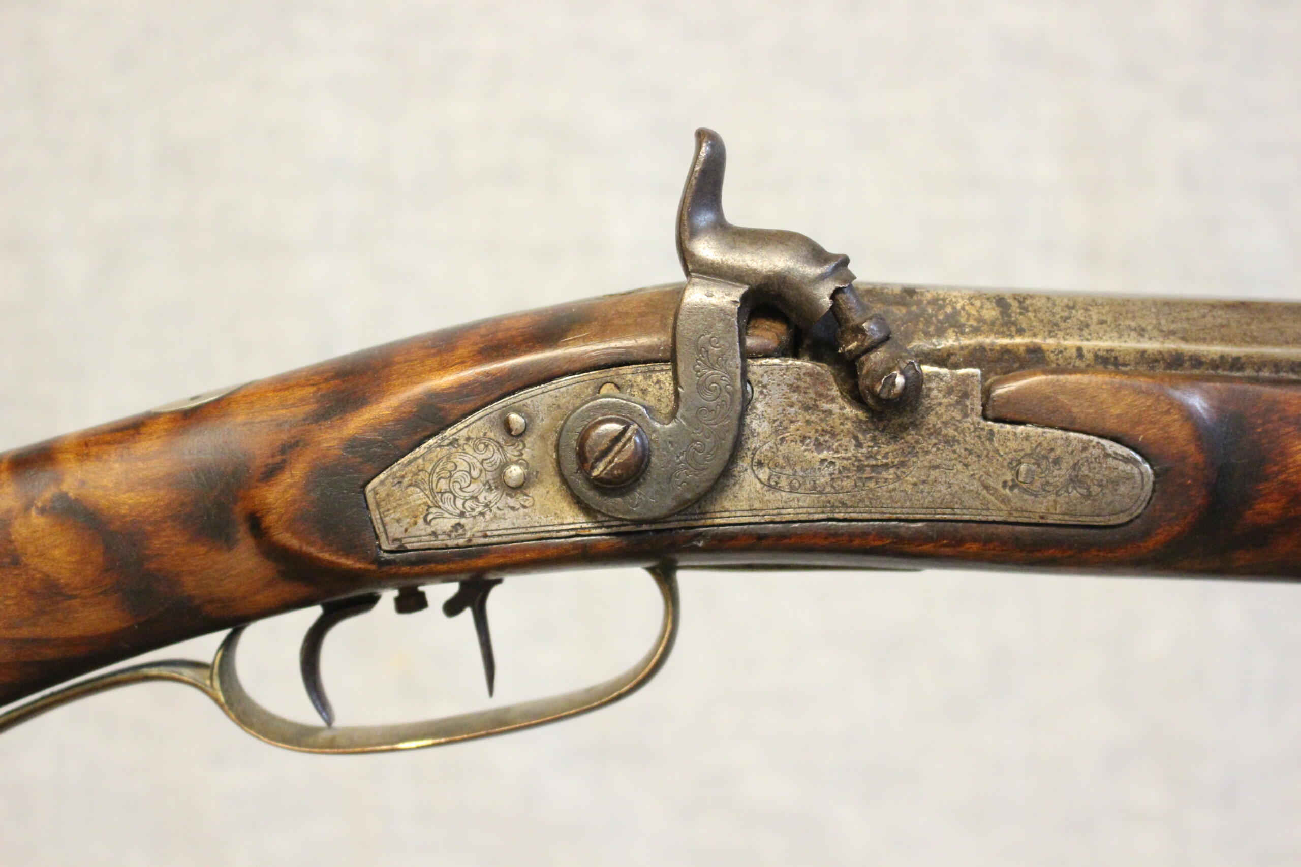 The rifle is in excellent condition with no losses or restoration. The rifled barrel is 38″ and about .36 cal.