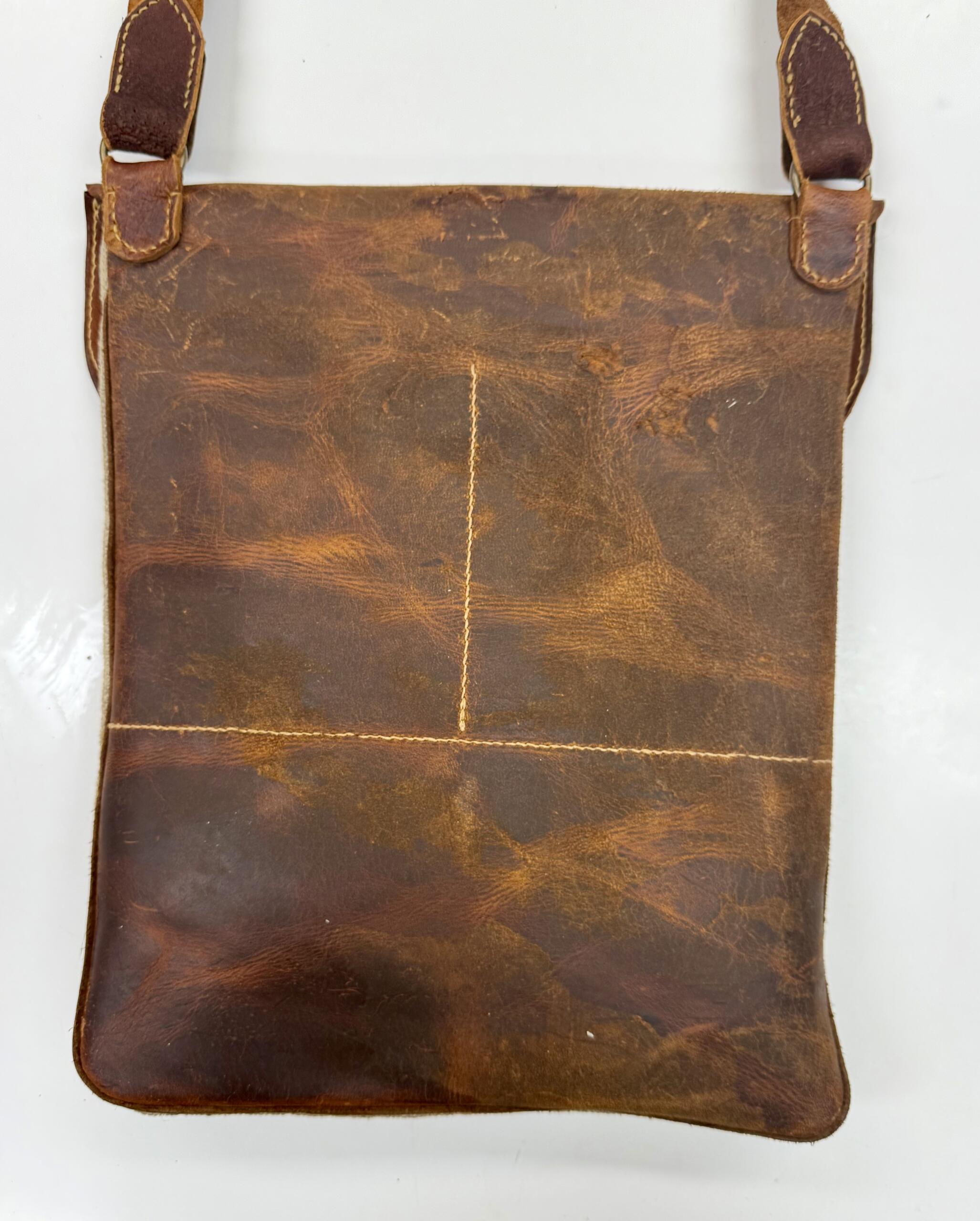 The real fun was in the flap. It’s pieced with oil tan pigskin and the same oil-tanned cowhide as the backing, all brought together with hand-sewn X stitches for both strength and character.