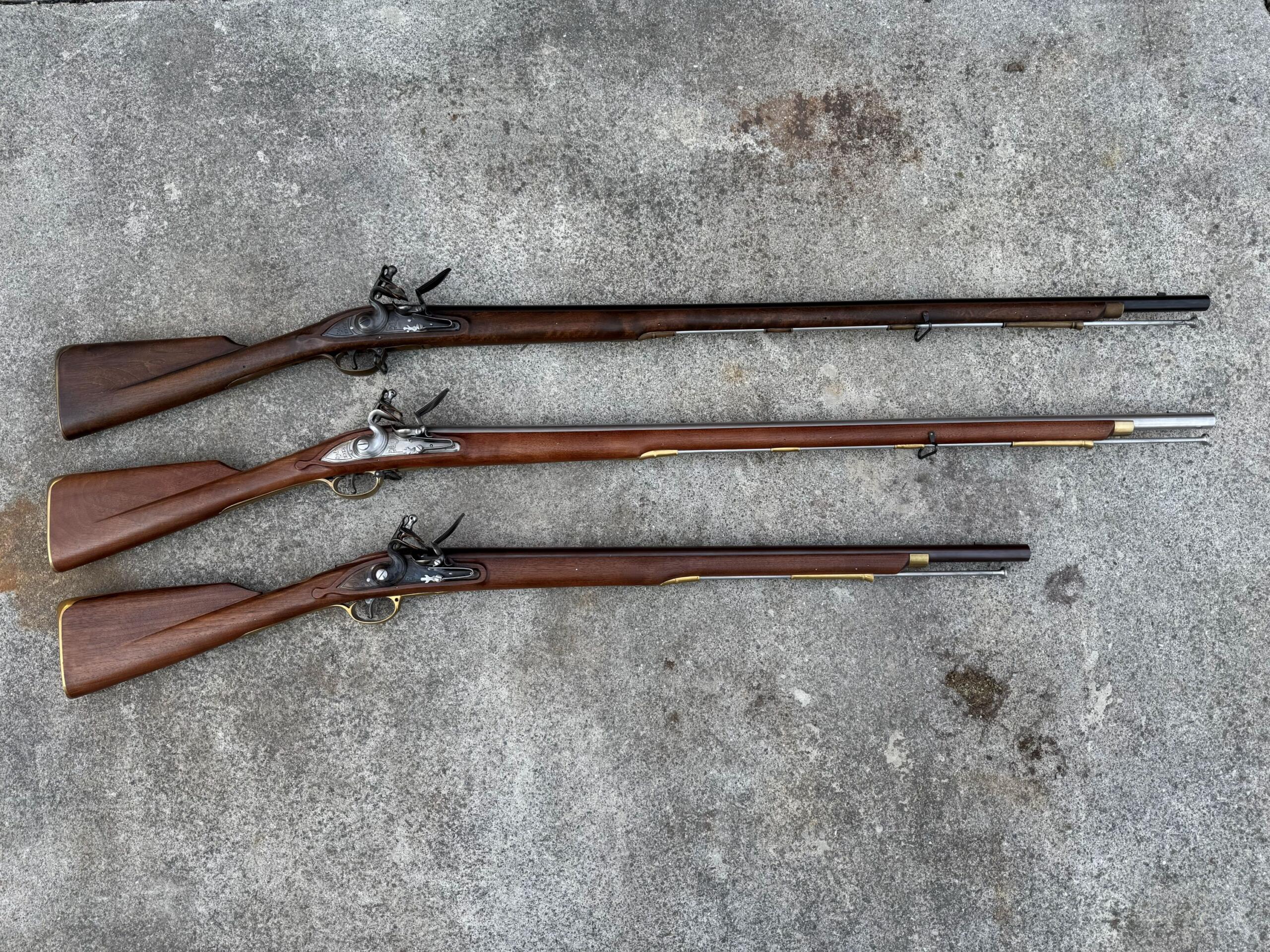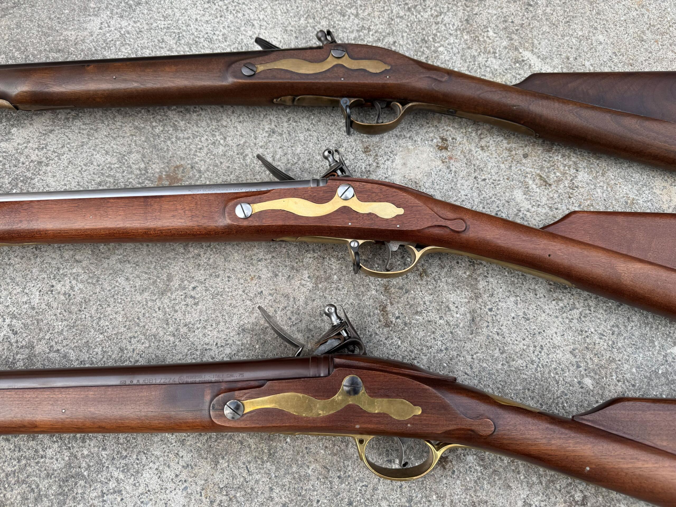 All 3 muskets are .75 caliber smoothbore.