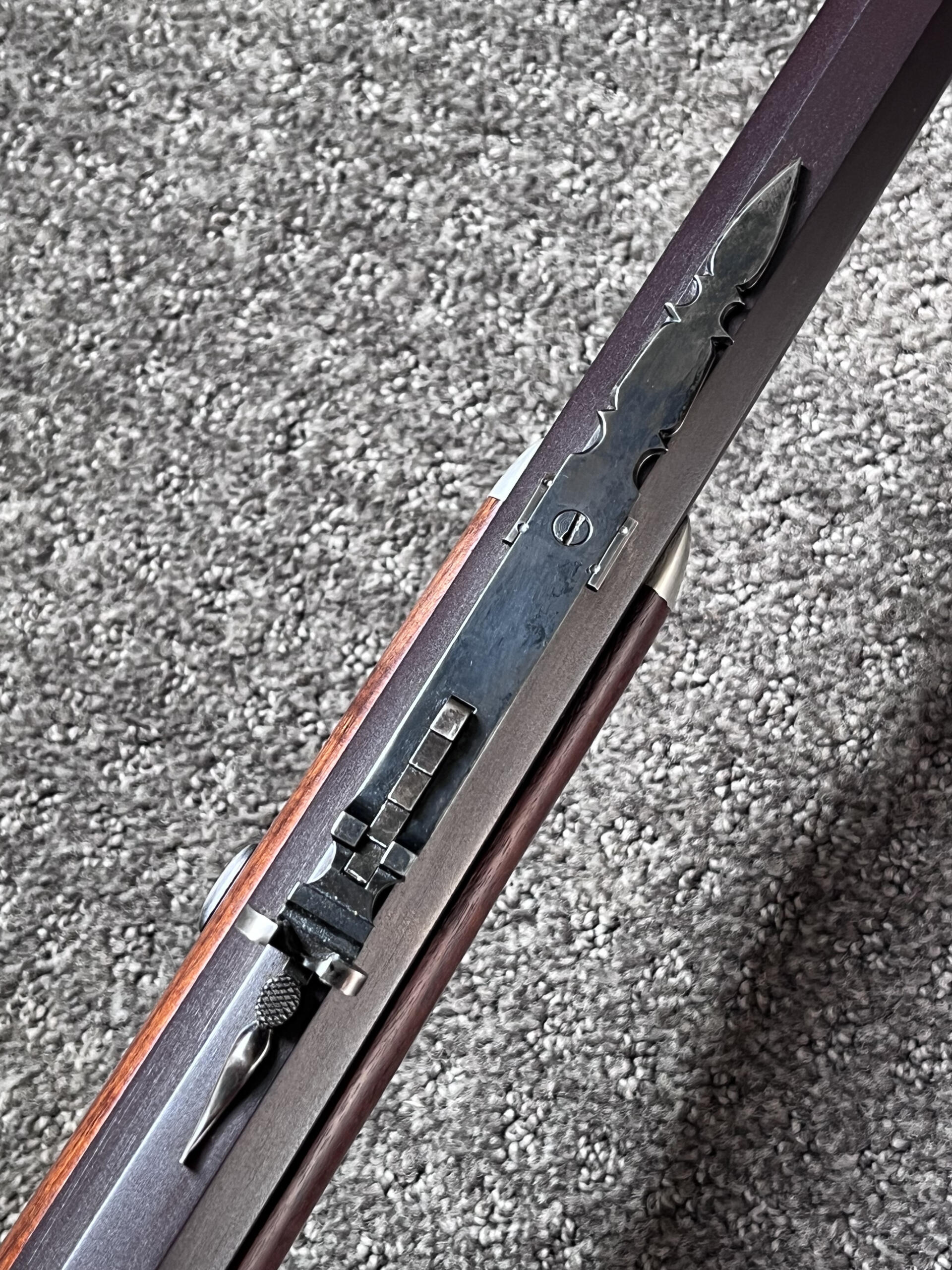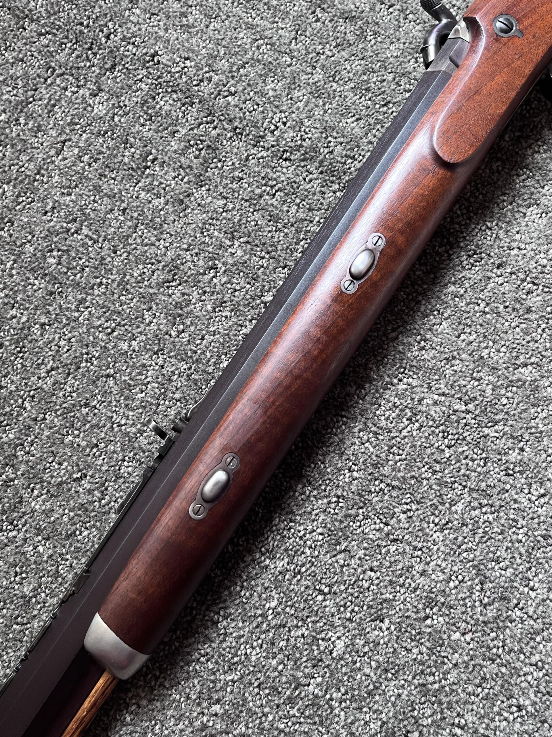 Mechanically, everything is in top working order. The rifle comes with its original wood ramrod, tipped in brass.